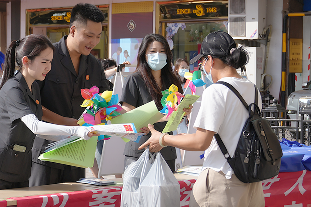 在建设街步行街反邪教宣传现场,法院干警通过精心制作的展板与通俗易懂的宣传折页,向居民深入剖析邪教组织特征、社会危害及常见渗透手段。