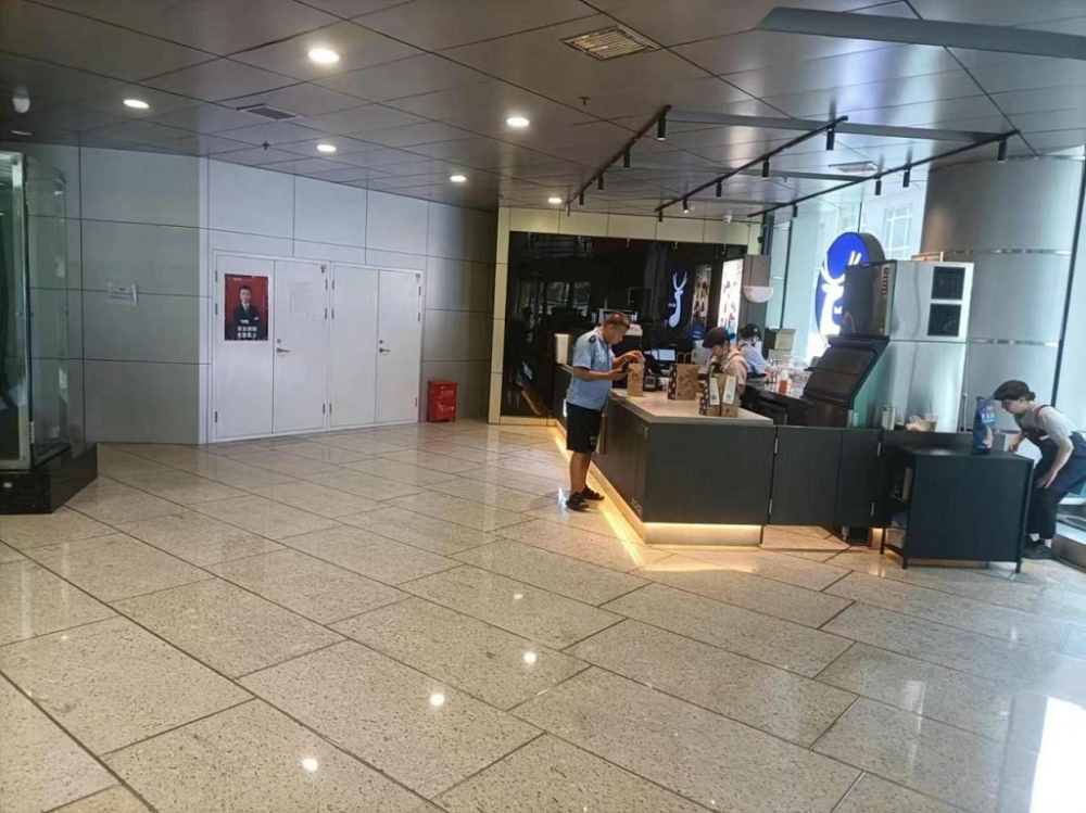 图为哈尔滨德润物业管理有限责任公司将南岗区红军街15号奥威斯发展大厦大厅租给一咖啡厅的情景
